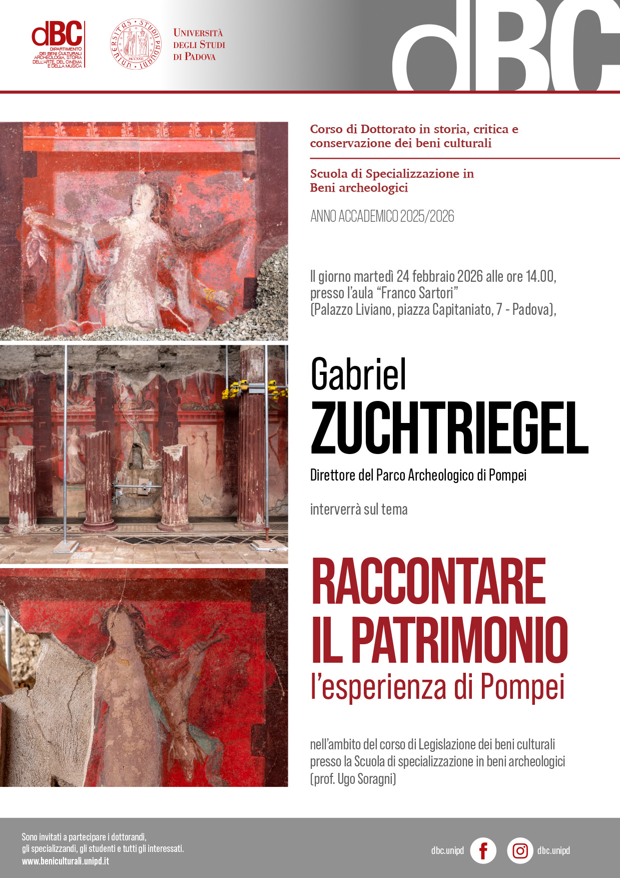 Nell'ambito del Ciclo di Conferenze organizzate dalla Scuola di Specializzazione in Beni storico-artistici (Direttrice Cristina Guarnieri) il giorno lunedì 23 febbraio 2026, presso l'Aula Diano di Palazzo Liviano alle ore 16.00, Marta NEZZO (professoressa ordinaria di Museologia e critica artistica e del restauro) e Giovanna VALENZANO (professoressa ordinaria di Storia dell’arte medievale) terranno un seminario sul tema "Il restauro degli arredi Gio Ponti negli ambienti del rettorato al Bo: tra istanze filologiche, autorialità e necessità d'uso". Introduce Giovanni Bianchi.