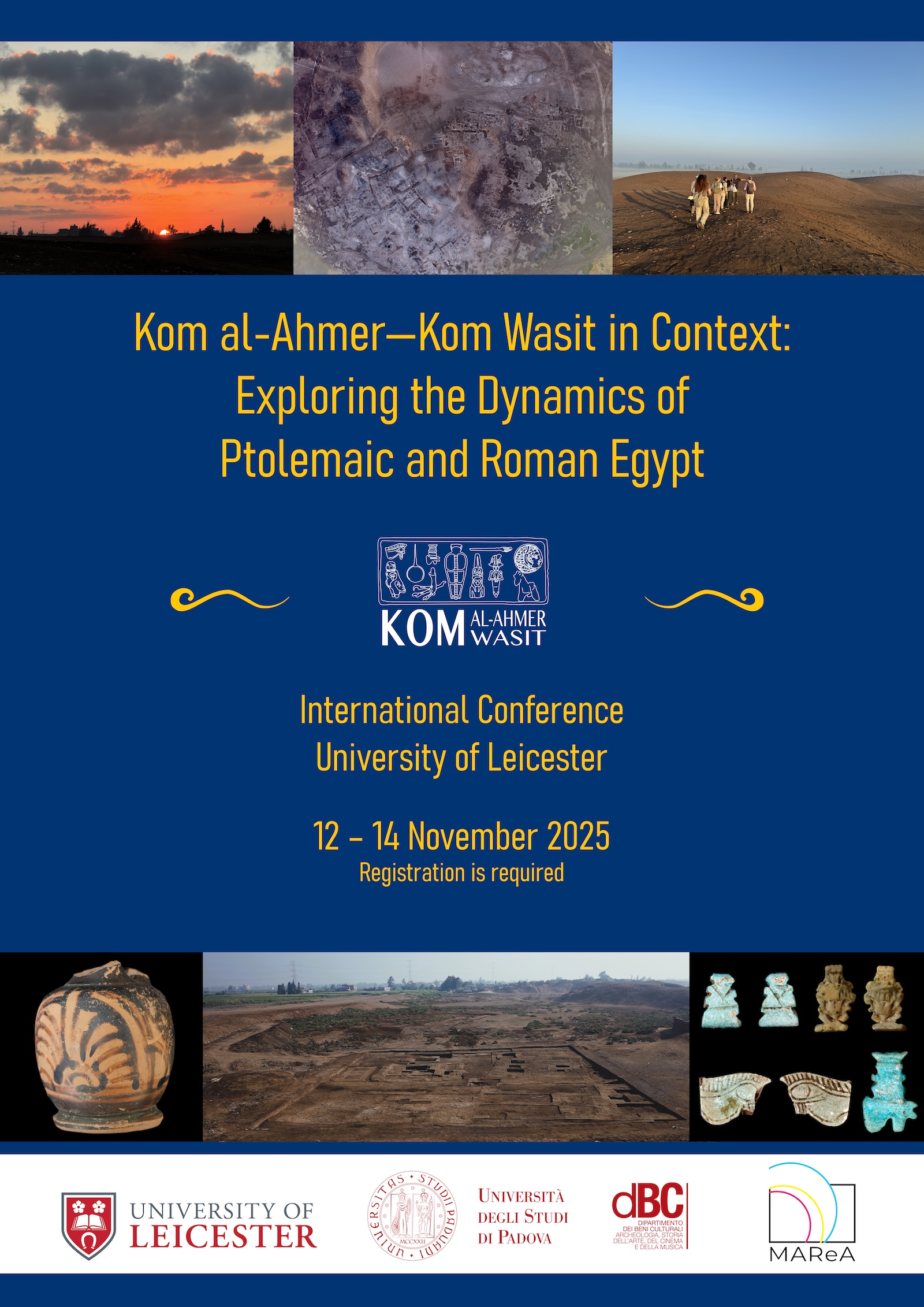 Da mercoledì 12 a venerdì 14 novembre 2025 presso University of Leicester (Fielding Johnson Council Suites 1 & 2, University of Leicester, LE1 7RH) si terrà la Conferenza Internazionale sul tema "Kom al-Ahmer—Kom Wasit in Context: Exploring the Dynamics of Ptolemaic and Roman Egypt": l'iniziativa è sostenuta e patrocinata dall'Università degli Studi di Padova, dal Dipartimento dei Beni Culturali dell'Università di Padova, in collaborazione con l'Università di Leicester.